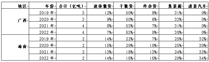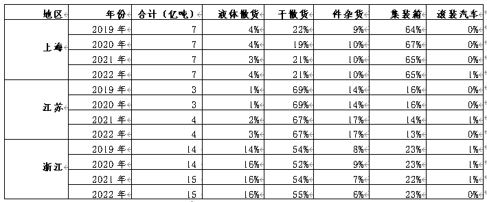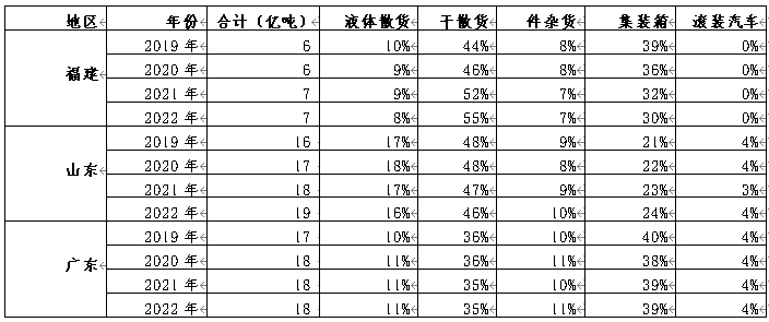 2)中国沿海港口分省货物类型细分统计