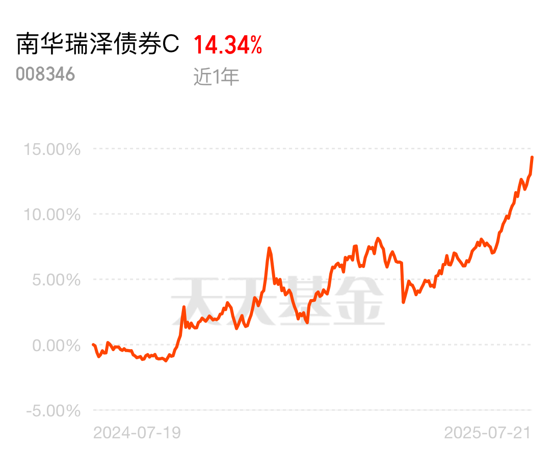 债市收益低得可怜,南华瑞泽这只混债却很争气,近一年超 14% 的收益,市面上找不出几个对手。今年权益强势,选混债增强收益太对了。