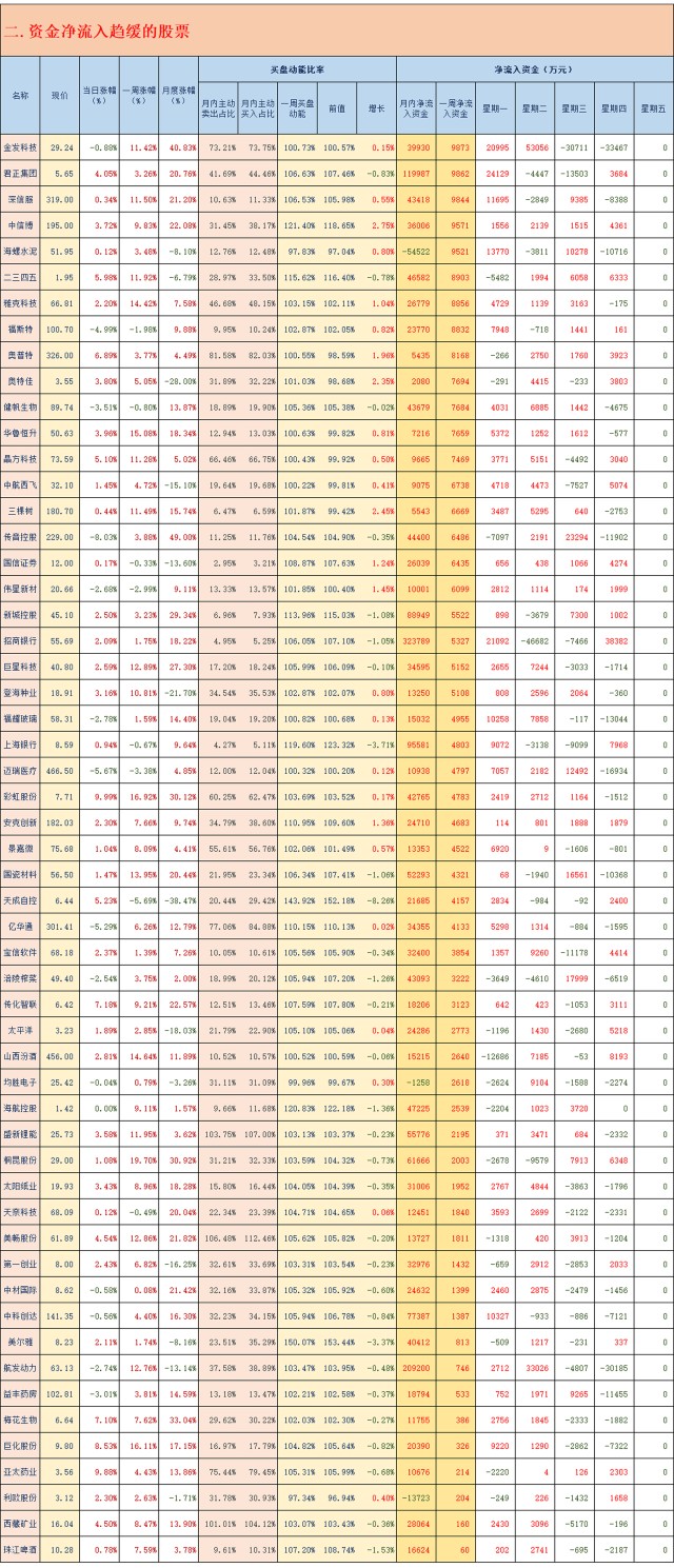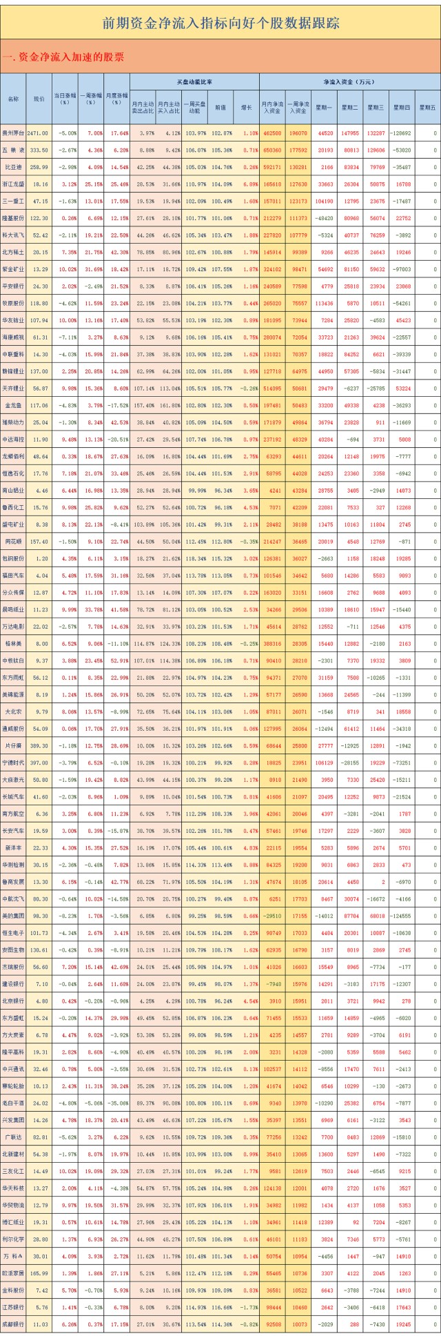 前期资金净流入指标向好个股数据跟踪(2021.02.18)
