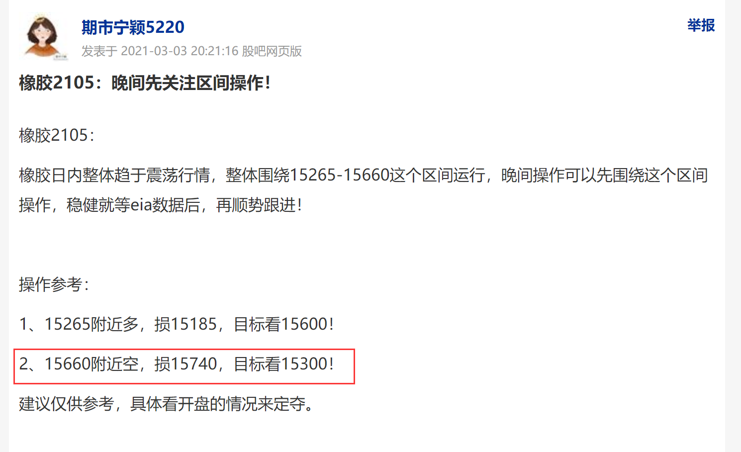 橡胶晚间建议关注15660附近压制布局空单,目前顺利到达止盈目标位15300!