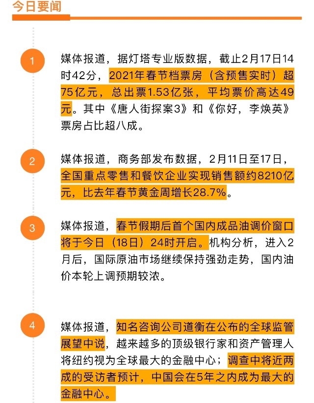 鹏华早讯2.18 今年春节假期全国重点零售和餐饮企业销售额约8210亿元、同比增28.7%