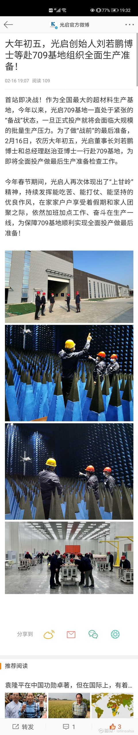 大年初五,光启创始人刘若鹏博士等赴709基地组织全面生产准备!