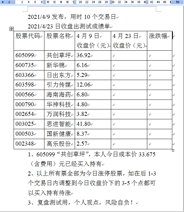 来点干货,精选10个股,10个交易日测试下总成绩