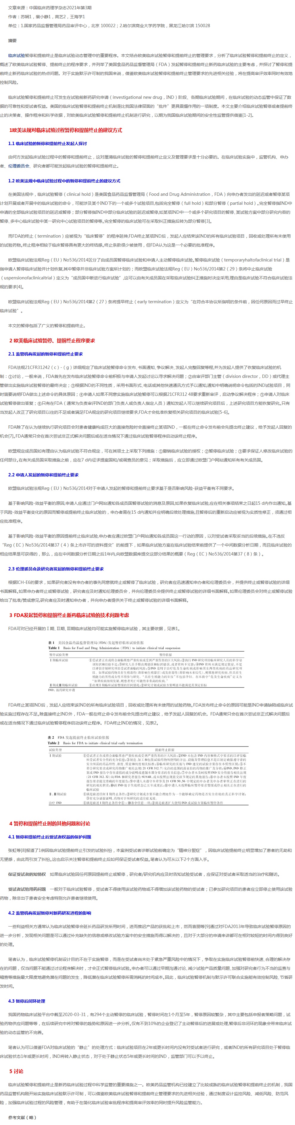 关于欧美临床试验暂停和提前终止的技术管理要求