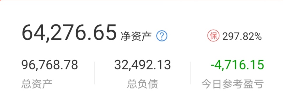 《每日一帖,向着50万目标》净资产64276 当日盈亏-4716 累计提27K