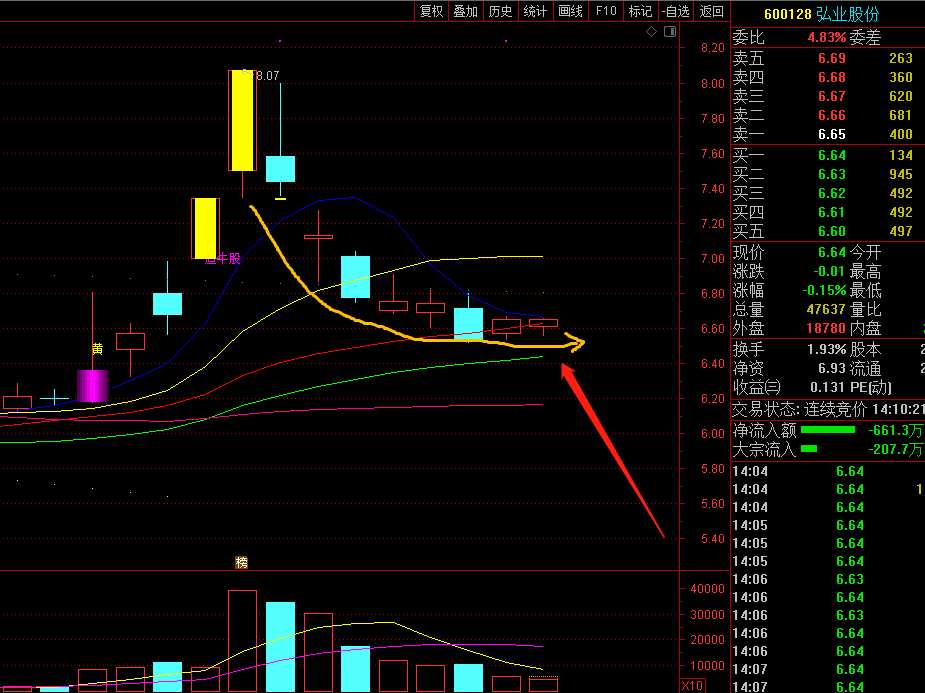 600128看能不能走圆弧;回调下来买;止损6.4;