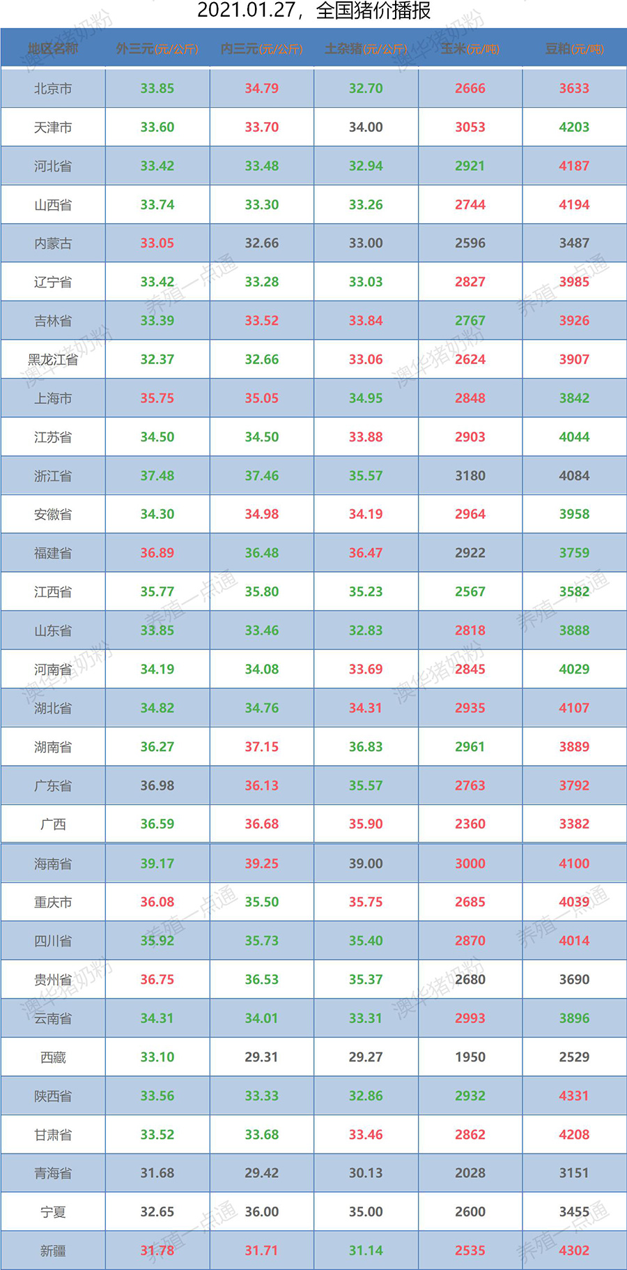 2021.01.27,全国生猪价格播报