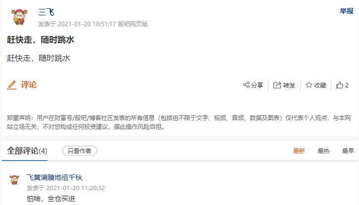 郑重声明:用户在财富号/股吧/博客等社区发表的所有信息(包括但不限于文字、视频、音频、数据及图表)仅代表个人观点,与本网站立场无关,不对您构成任何投资建议,据此操作风险自担。