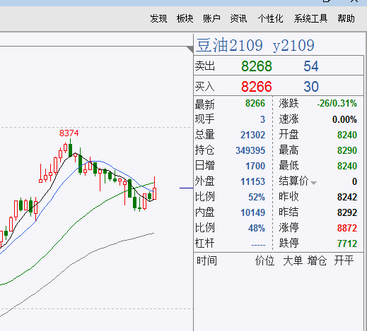 【短多】现价做多豆油,损40个点