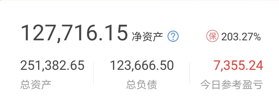 《每日一帖,向着50万目标》净资产127716 当日盈亏7355 累计提50K