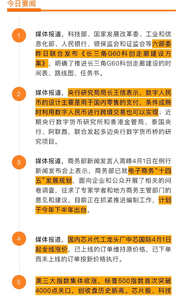 鹏华早讯 4.2 长三角G60科创走廊建设“路线图”发布