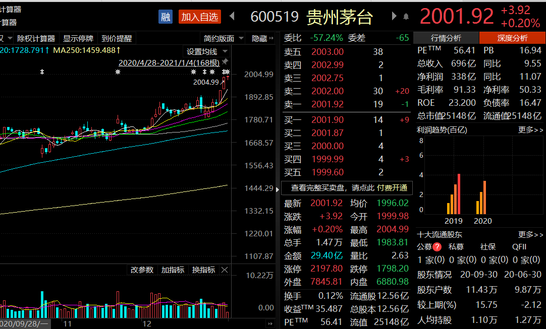 茅台上2000了