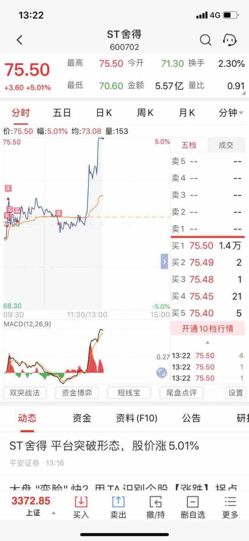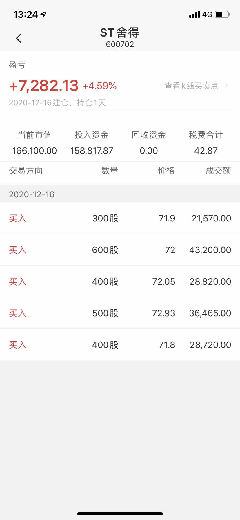 感谢舍得 第一次吃涨停 虽然只有五个点