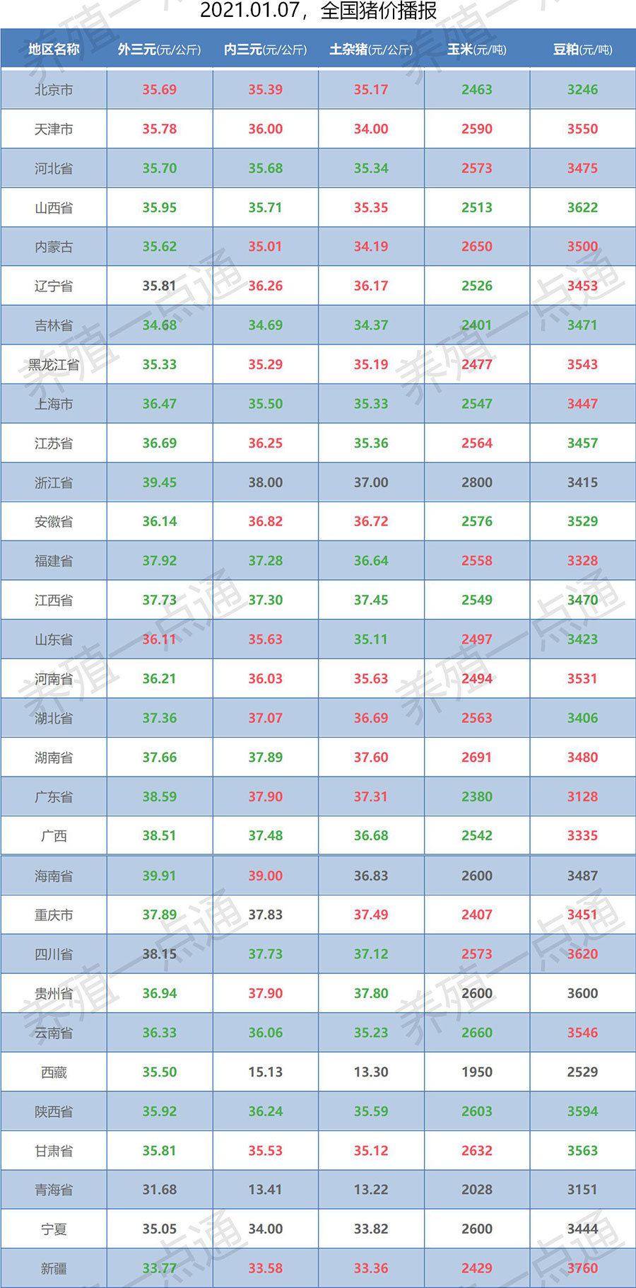 2021.01.07,全国生猪价格播报