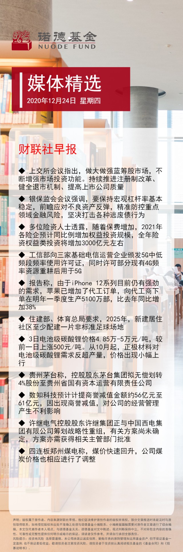 诺德基金媒体精选:一图把握市场要闻(2020.12.24)