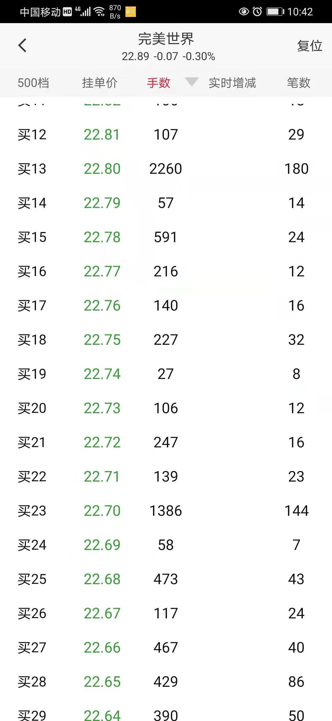 这个22的价格守的很严密呀!五步一小单,十步一大单的