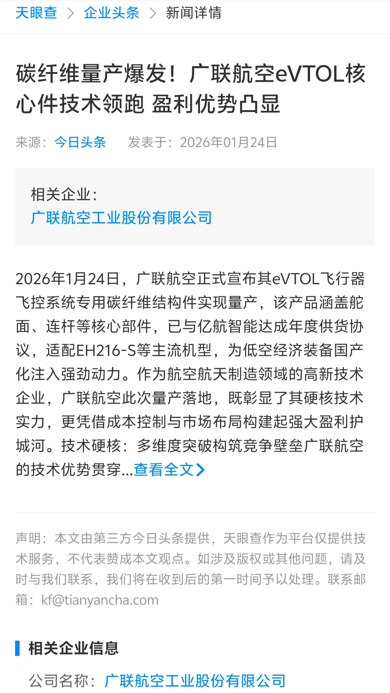 广联与亿航智能的旧闻:碳纤维量产爆发!广联航空eVTOL核心件技术领跑 盈利优势凸显