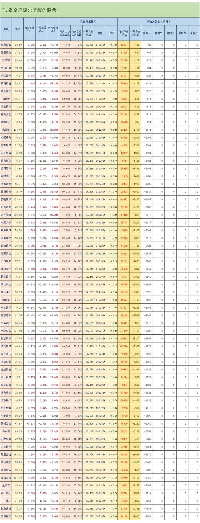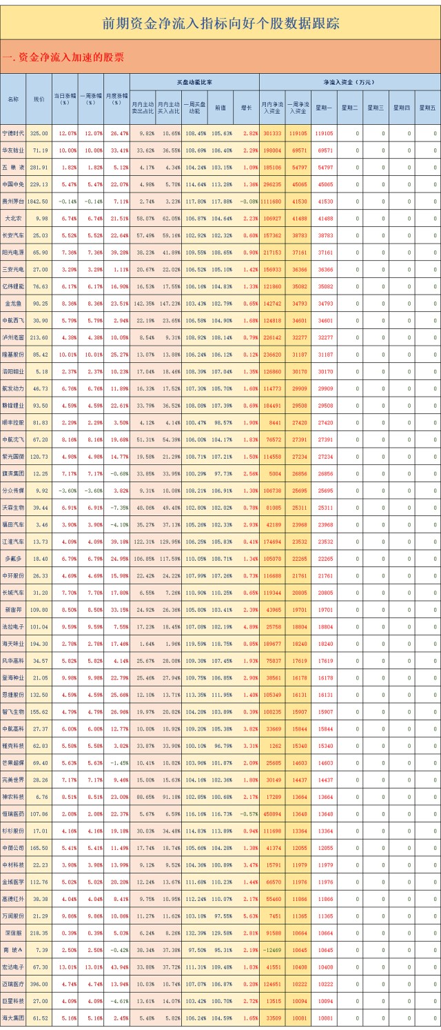 前期资金净流入指标向好个股数据跟踪(2020.12.21)