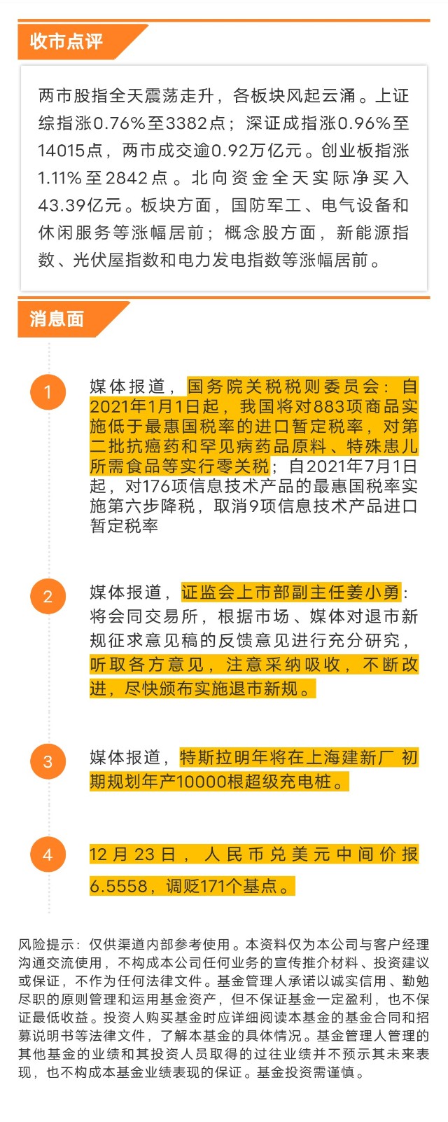 收市点评12.23 两市高开高走 国防军工板块午后走强