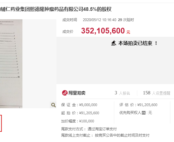 拍卖居然溢价30%,辅仁股权很抢手。