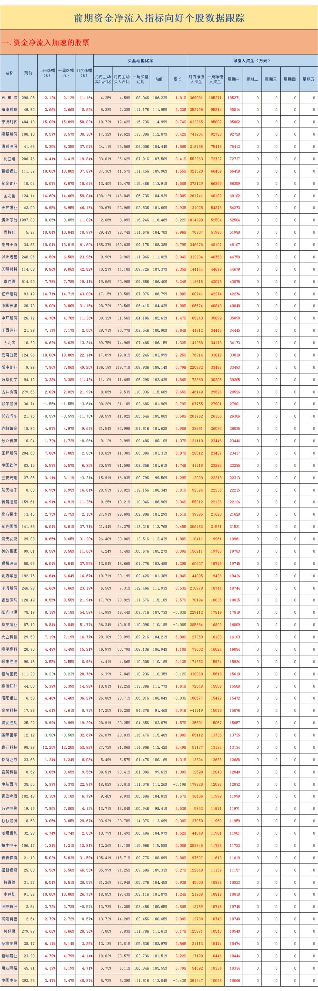 前期资金净流入指标向好个股数据跟踪(2021.01.04)