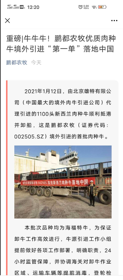 如果信息是真的,鹏都农牧股民放心持股待涨!