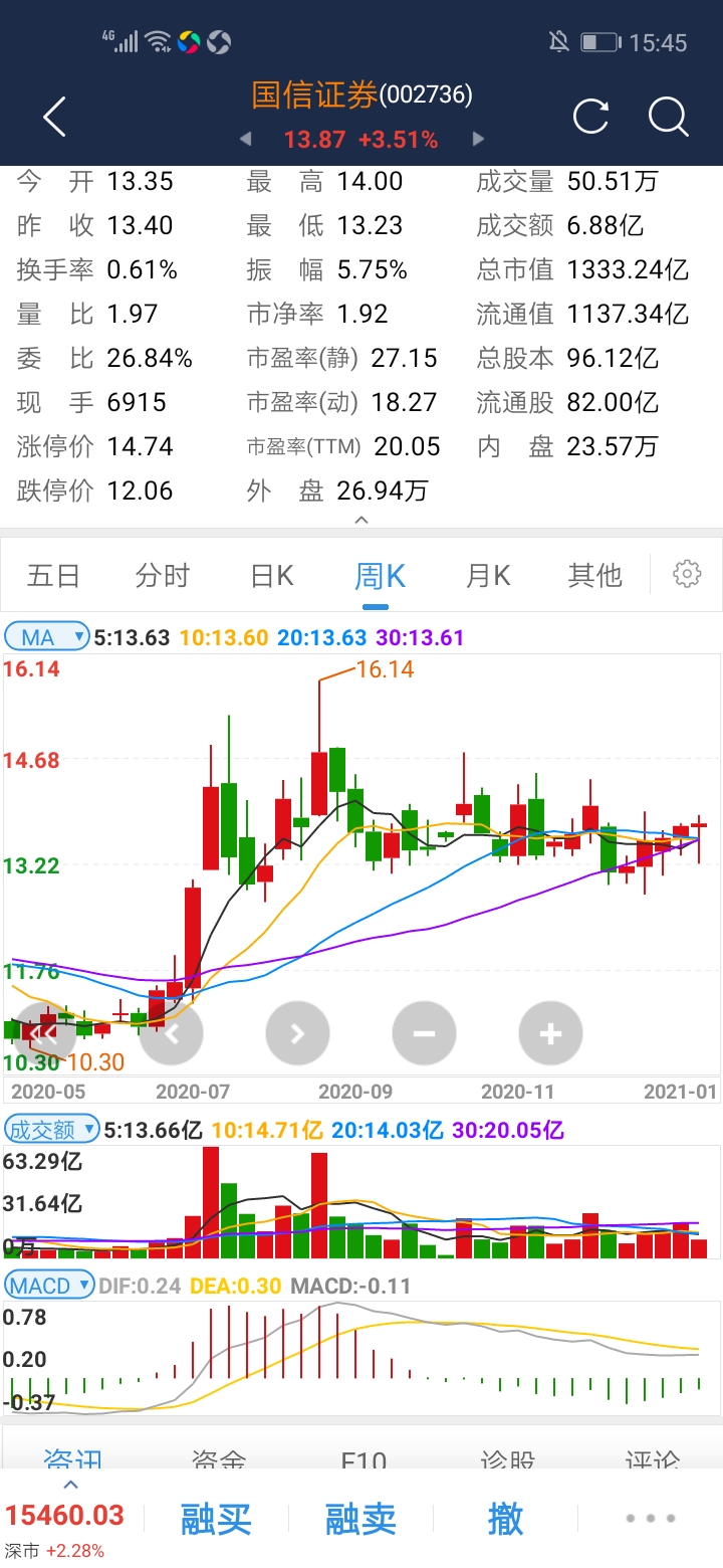 周线小碎步放量5连阳,技术形态很完美,不知道这次能不能创新高