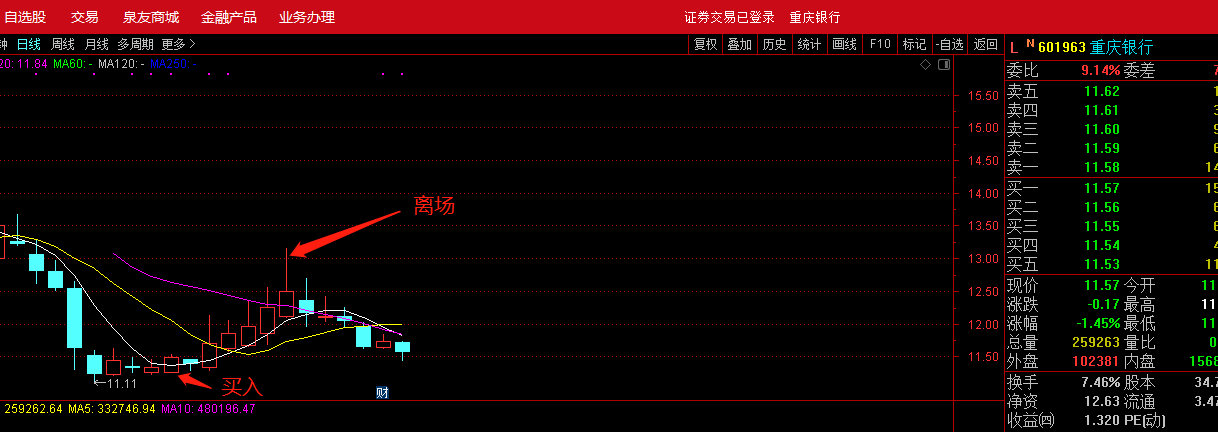 清茶一杯,看龟兔赛跑。重庆银行的买入与卖出实操!