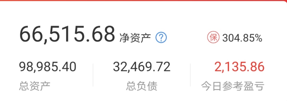 《每日一帖,向着50万目标》净资产66515 当日盈亏2135 累计提27K