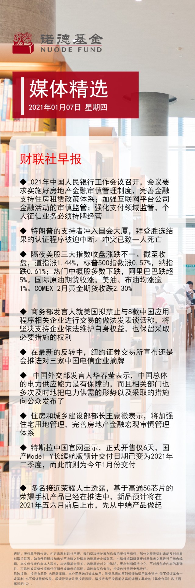 诺德基金媒体精选:一图把握市场要闻(2021.01.07)