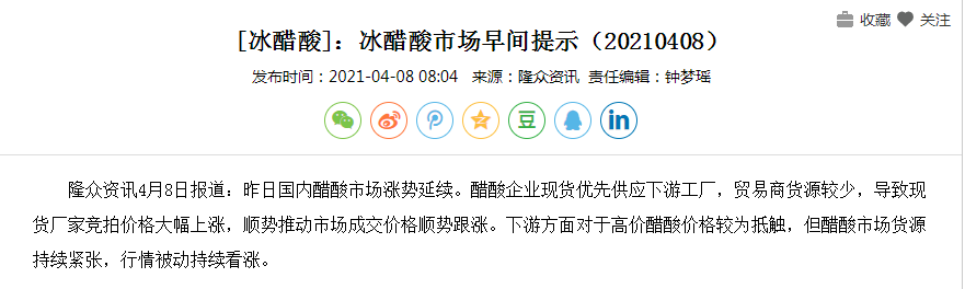 冰醋酸早间提示