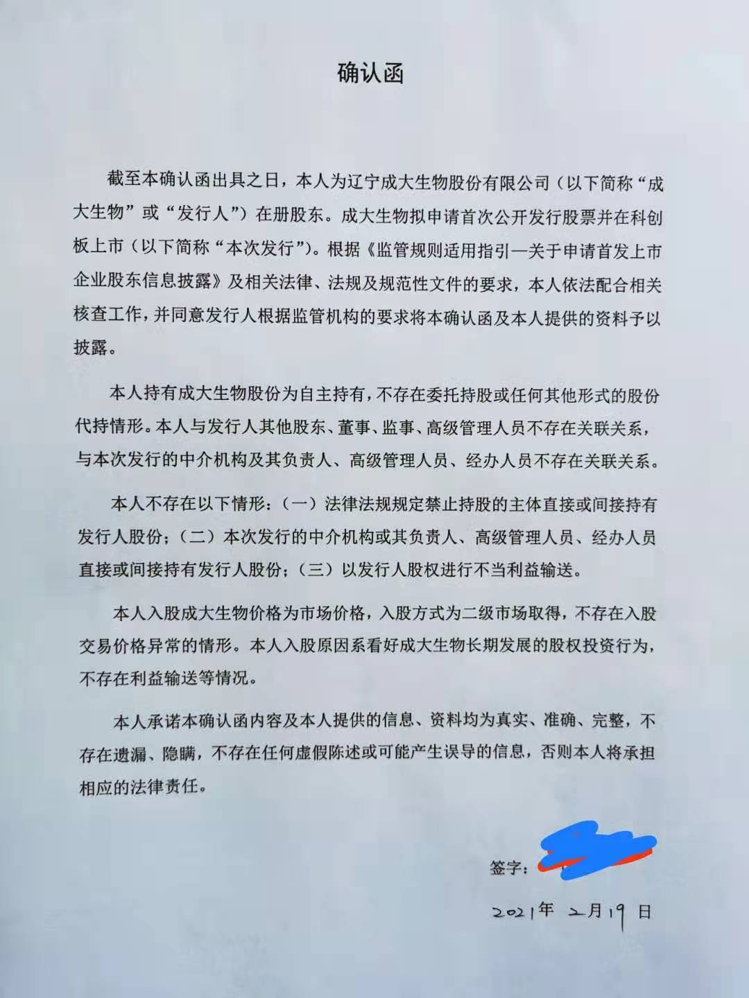 确认函图片,打印拍照回传。声明下:非代持、无利益输送、二级市场买入