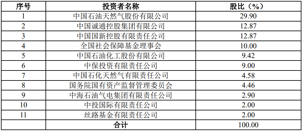 拟上市的国家管网公司最新股权