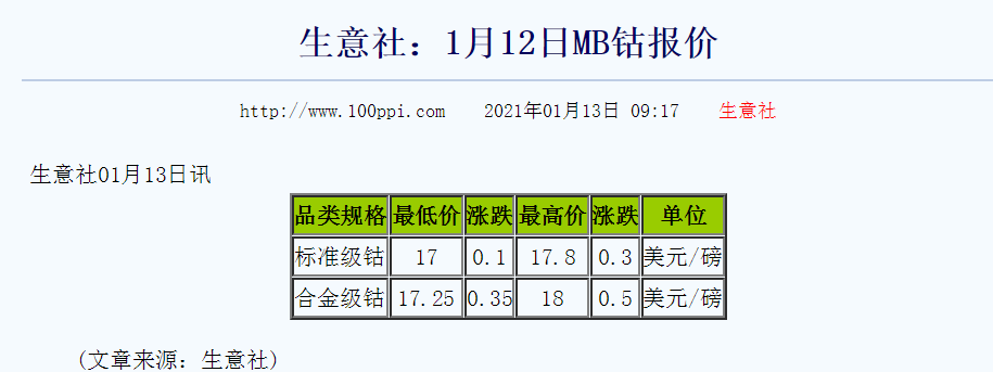 1月12日LME金属钴.mb钴价已经连续上涨好多天了
