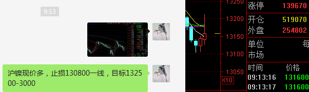 沪镍多单盈利1000个点,上方关注13300附近的突破情况