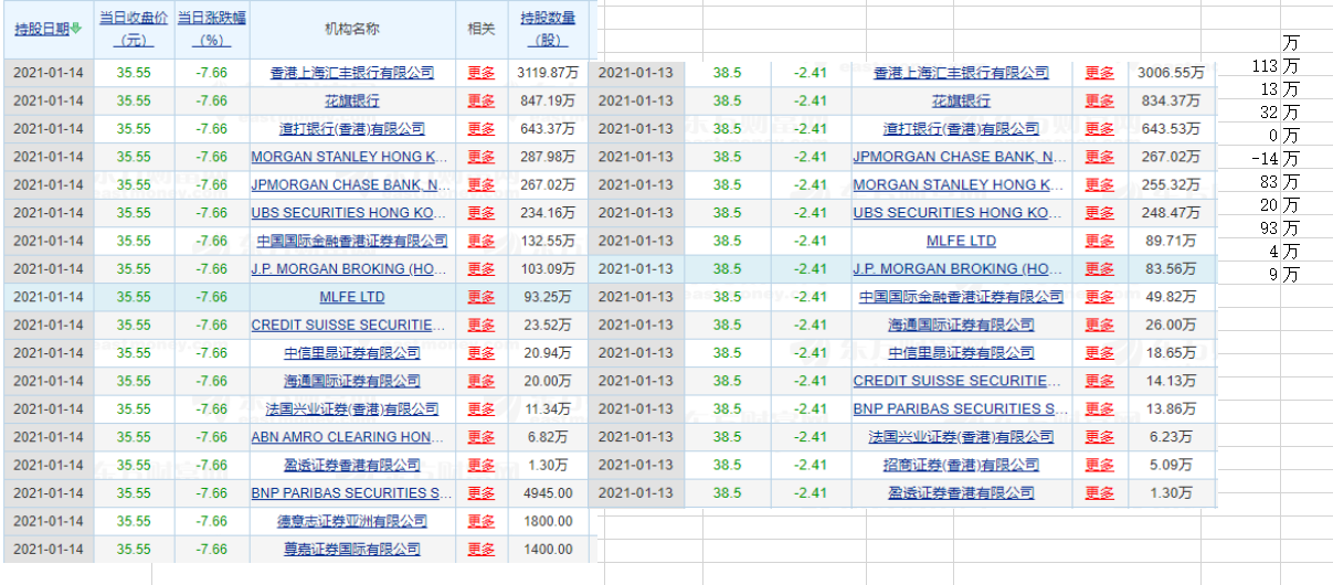港股通前十大股东昨天加仓353万股,持股集中度进一步加强。汇丰和中国证金加仓较多