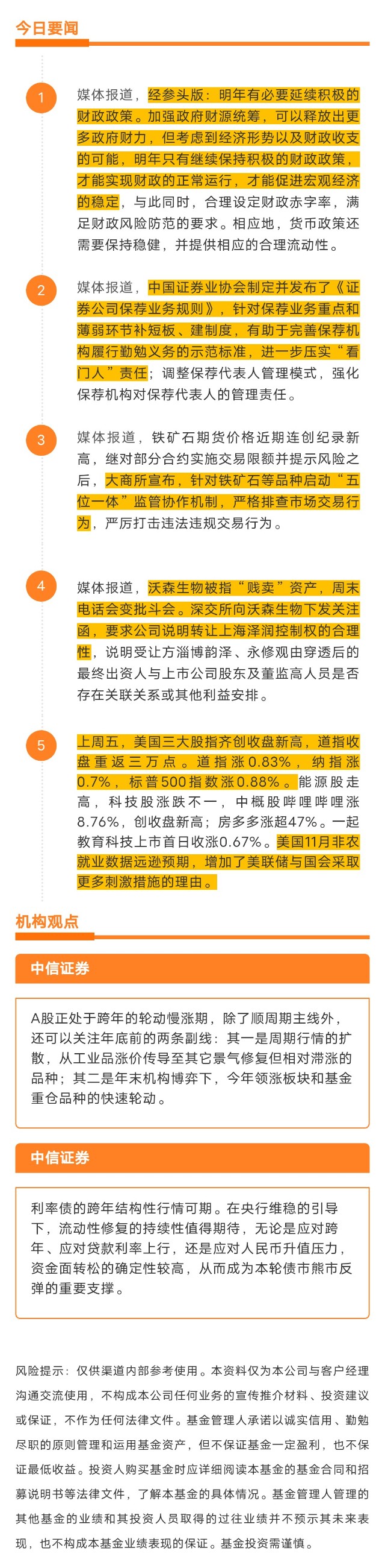 鹏华早讯12.7 经参头版:明年有必要延续积极的财政政策