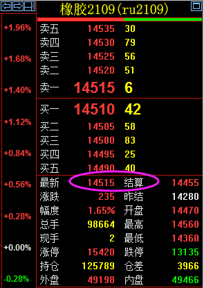 橡胶2109合约,现在进空单价格是14510,看看一会收益多少?