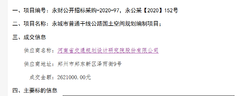 永城市普通干线公路国土空间规划编制项目中标结果公告