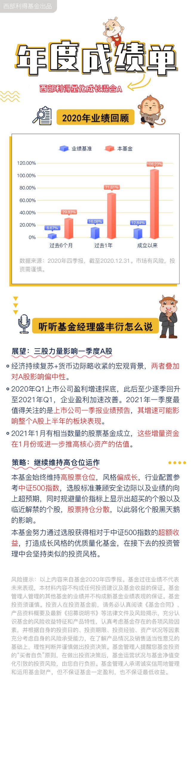 【年度成绩单】西部利得量化成长混合A成立以来涨幅108.23%!