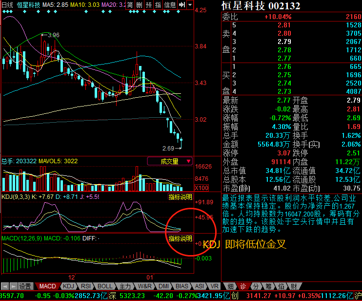 昨天进场抄底 今天KDJ即将金叉 厉害了我的恒星