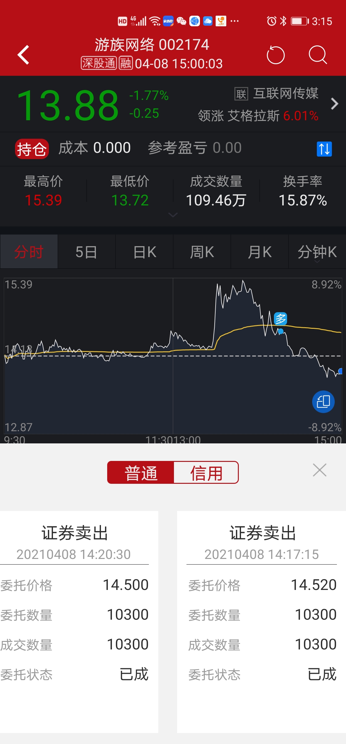 预埋15.45没卖掉!14.5清空割肉,少赚1.5万气死了