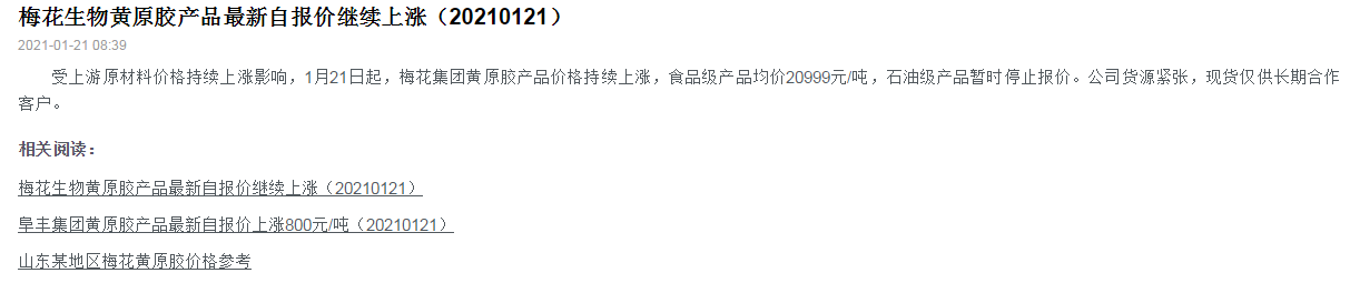 黄原胶产品继续上涨