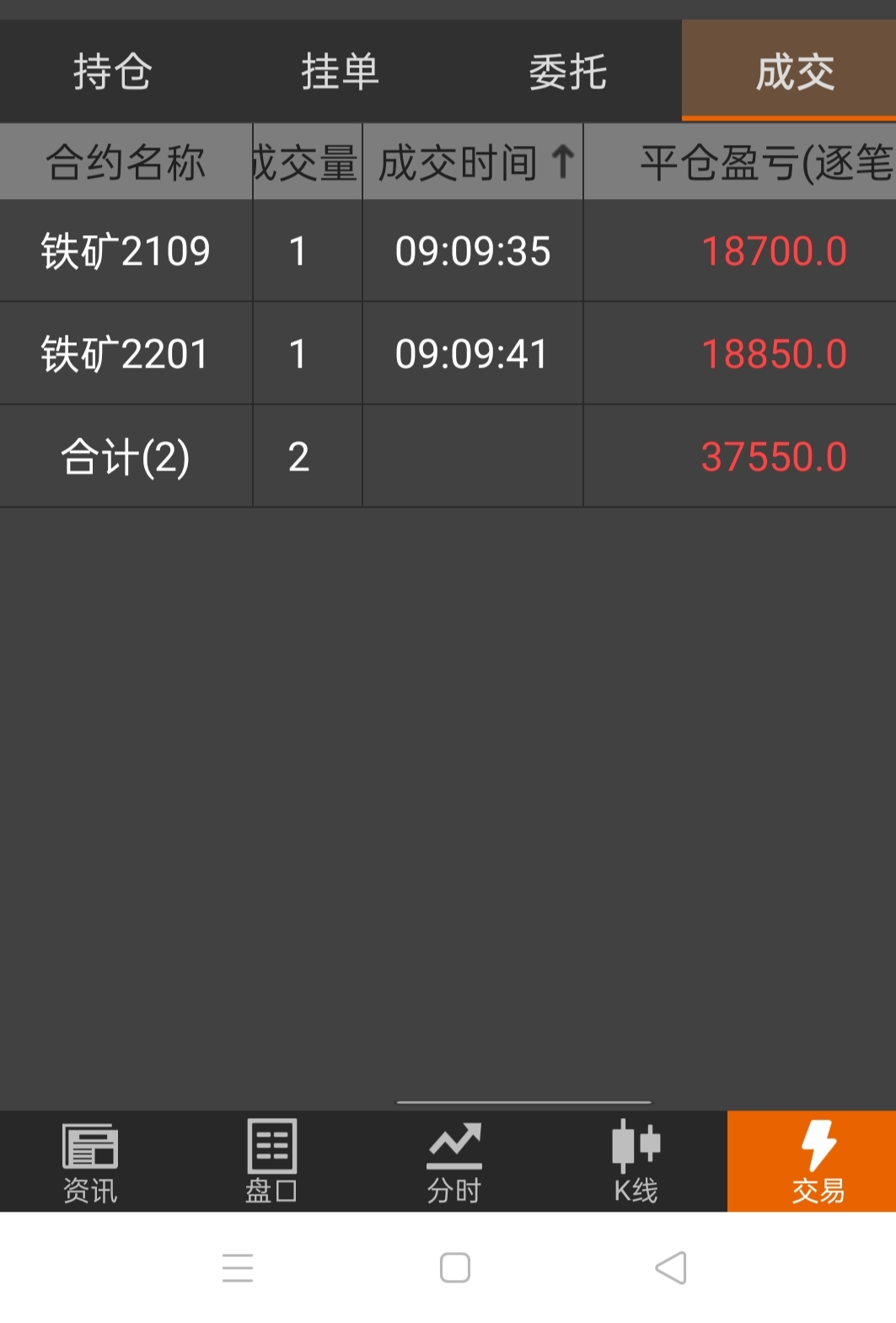 3.22平仓2手铁矿,小赚3.7w,剩下6手继续持有!