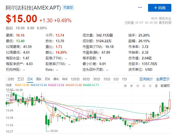 阿尔法科技(AMEX:APT)