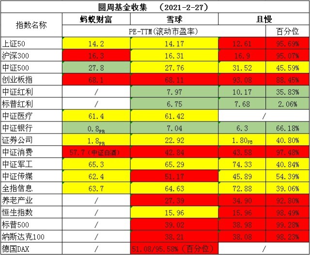 一、当前各指数估值情况:
