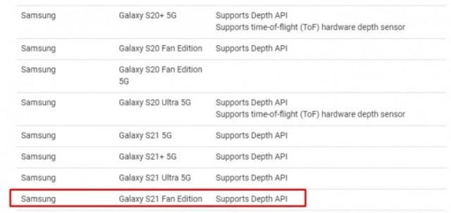 有关 Galaxy S21 FE 的消息尚未得到三星证实,不过这部手机却出现在 Google 的 ARCore 支持网页上。