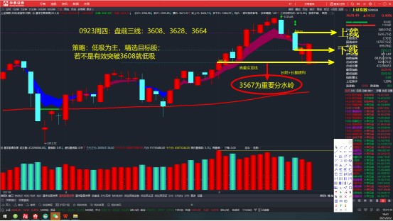 0923周四盘前三线预设为3608、3628、3664;