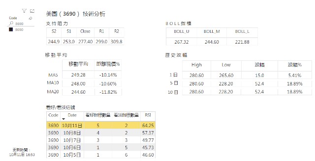 科技股中今日最佳美团(3690)收报277.4元,上升 8.36%。美团全日波幅约 5.41%,美团最近一个月的波幅维持在224.8至280.6元。