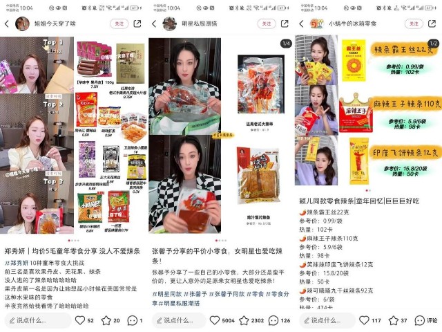 连女明星都对这些“五毛零食”爱不释手,不同品牌的辣条在各路明星的同款博中花式出镜。